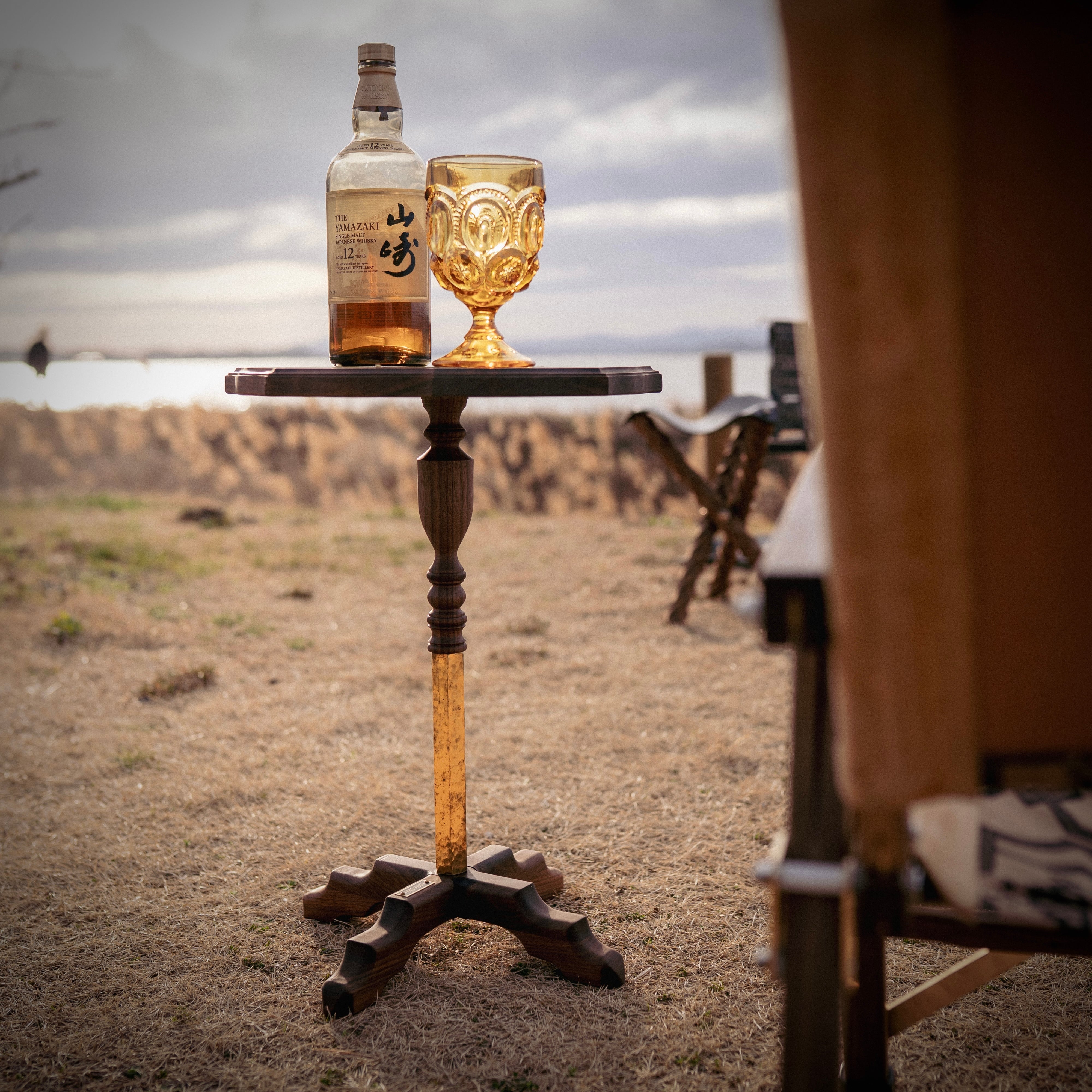 脚の下部にあしらわれた真鍮は、デザインのアクセントであると同時に、重心を下げて安定感を高める実用的な役割も果たしています。